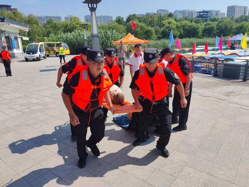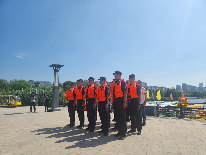 為切實提升防溺水事故應急處置和救援能力,有效預防和減少溺亡事故,進一步做好齊盛湖公園安全保障工作,2023年8月4日,市保安公司在盛湖舉行“防溺水應急救援演練”。市保安公司黨委委員、副總經理李鵬,市城市管理局黨組成員、市公園城市服務中心主任伊繼忠,齊盛湖公園管理辦公室科長王方福出席活動。