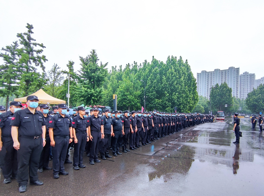 活動(dòng)舉行期間,全體安保隊(duì)員著裝規(guī)范、精神抖擻,不畏風(fēng)雨、堅(jiān)守崗位,對進(jìn)場人員細(xì)致認(rèn)真地進(jìn)行票證查驗(yàn)、安全檢查和道路指引,嚴(yán)防管制器具、易燃易爆物等違禁品被攜帶入場,確保不漏一人、進(jìn)出有序。會(huì)場內(nèi)外,安保隊(duì)員們多次開展現(xiàn)場巡邏,全力維護(hù)會(huì)場秩序,保障會(huì)場安全。