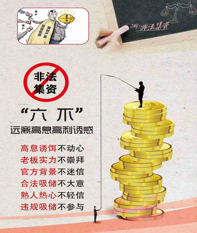 四看。一看融資合法性,除了看是否取得企業(yè)營業(yè)執(zhí)照,還要看是否取得相關(guān)金融牌照或經(jīng)金融管理部門批準(zhǔn)。二看宣傳內(nèi)容,看是否含有或暗示“有擔(dān)保、無風(fēng)險(xiǎn)、高收益、穩(wěn)賺不賠”等內(nèi)容。三看經(jīng)營模式,看項(xiàng)目真實(shí)性、資金投向、獲取利潤的方式等。四看參與主體,看是否主要面向老年人等特定群體。